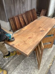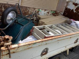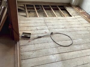 現況4DKの築古RC、後輩に来てもらいできる範囲でDIY、まず内部解体。仕上げの作業工程や間取り変更を理解してから解体、天井を残し床と壁を撤去、自分で解体すると構造がわかる。和室と洋室、床組(床下構造)の違い、天井廻縁と壁の取り合い(直交してるとこ)が部屋によって微妙に異なること、洋室の床解体はめちゃしんどいこと、などなど