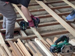 1.コンパネで草を倒す→2.倒れにくい草は抜くか刈りまとめる→3.倒した草に黒マルチ被せるか、取った草を土の上に置き草マルチにする